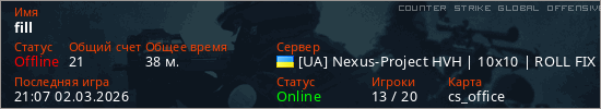 Играет на Counter Strike Global Offensive сервере. Страна: УкраинаПервый раз замечен 17:13 26.02.2026