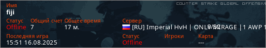 Играет на Counter Strike Global Offensive сервере. Страна: РоссияПервый раз замечен 17:14 15.08.2025