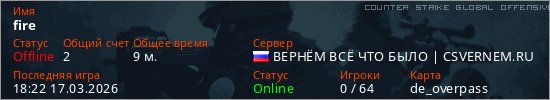 Играет на Counter Strike Global Offensive сервере. Страна: РоссияПервый раз замечен 17:30 17.03.2026