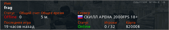 Последний раз был в сети 16 часов назад Игрок с таким ником замечен на 20 серверах