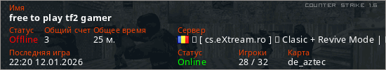 Играет на Counter Strike 1.6 сервере. Страна: РумынияПервый раз замечен 05:12 27.06.2025
