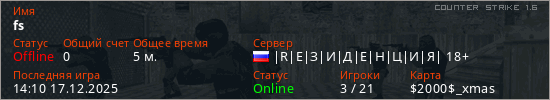 Последний раз был в сети 14:10 17.12.2025 Игрок с таким ником замечен на 21 сервере
