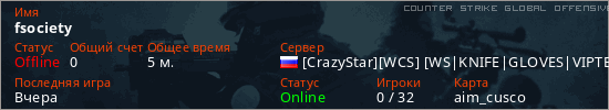 Играет на Counter Strike Global Offensive сервере. Страна: РоссияПервый раз замечен 17:35 31.03.2026