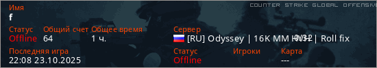 Играет на Counter Strike Global Offensive сервере. Страна: РоссияПервый раз замечен 09:41 26.04.2025
