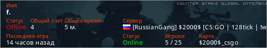 Играет на Counter Strike Global Offensive сервере. Страна: РоссияПервый раз замечен 21:31 31.01.2026