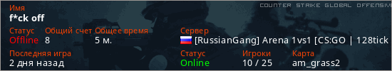 Играет на Counter Strike Global Offensive сервере. Страна: РоссияПервый раз замечен 01:21 10.01.2026