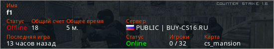 Последний раз был в сети 11 часов назад Игрок с таким ником замечен на 36 серверах