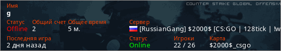 Играет на Counter Strike Global Offensive сервере. Страна: РоссияПервый раз замечен 19:27 04.03.2026