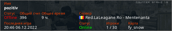 Играет на Counter Strike 1.6 сервере. Страна: РумынияПервый раз замечен 20:48 21.11.2022