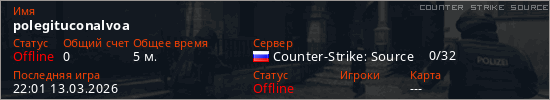Играет на Counter Strike Source сервере. Страна: РоссияПервый раз замечен 21:59 13.03.2026