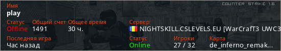 Последний раз был в сети 13 часов назад Игрок с таким ником замечен на 26 серверах