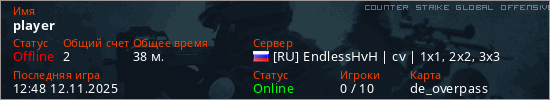 Играет на Counter Strike Global Offensive сервере. Страна: РоссияПервый раз замечен 14:36 09.11.2025