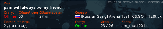 Играет на Counter Strike Global Offensive сервере. Страна: РоссияПервый раз замечен 12:32 15.03.2026