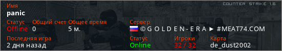 Играет на Counter Strike 1.6 сервере. Страна: РоссияПервый раз замечен 23:30 09.04.2026