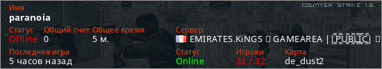 Последний раз был в сети 3 часа назад Игрок с таким ником замечен на 24 серверах