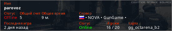 Играет на Counter Strike Source сервере. Страна: РоссияПервый раз замечен 14:32 19.04.2026