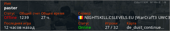 Последний раз был в сети 10 часов назад Игрок с таким ником замечен на 6 серверах