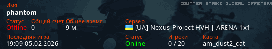 Играет на Counter Strike Global Offensive сервере. Страна: УкраинаПервый раз замечен 17:37 05.02.2026