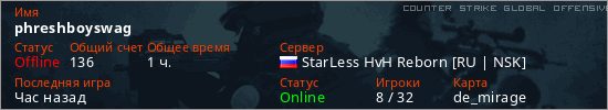 Играет на Counter Strike Global Offensive сервере. Страна: РоссияПервый раз замечен 20:38 24.11.2025