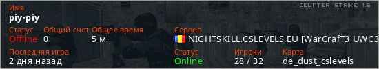 Последний раз был в сети 2 дня назад Игрок с таким ником замечен на 12 серверах