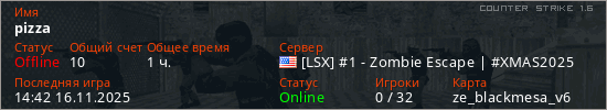 Играет на Counter Strike 1.6 сервере. Страна: СШАПервый раз замечен 18:39 13.09.2025