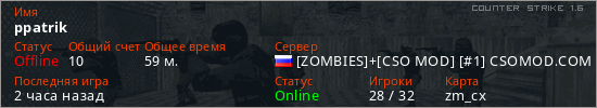Играет на Counter Strike 1.6 сервере. Страна: РоссияПервый раз замечен 11:59 03.05.2025