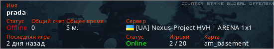 Играет на Counter Strike Global Offensive сервере. Страна: УкраинаПервый раз замечен 23:38 13.02.2026
