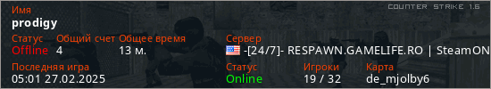 Играет на Counter Strike 1.6 сервере. Страна: СШАПервый раз замечен 04:54 25.02.2025