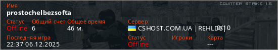 Играет на Counter Strike 1.6 сервере. Страна: УкраинаПервый раз замечен 21:56 05.12.2025