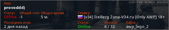 Играет на Counter Strike Source сервере. Страна: РоссияПервый раз замечен 20:14 03.02.2026