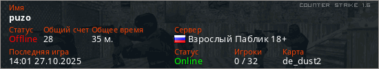 Последний раз был в сети 14:01 27.10.2025 Игрок с таким ником замечен на 5 серверах