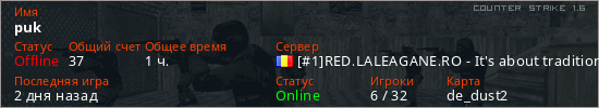 Играет на Counter Strike 1.6 сервере. Страна: РумынияПервый раз замечен 00:20 29.11.2025