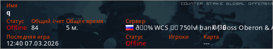 Играет на Counter Strike Global Offensive сервере. Страна: РоссияПервый раз замечен 12:38 07.03.2026