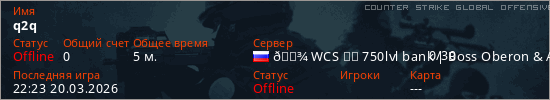 Играет на Counter Strike Global Offensive сервере. Страна: РоссияПервый раз замечен 22:21 20.03.2026