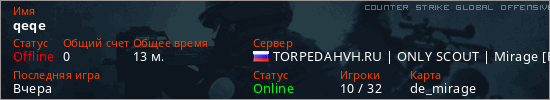 Играет на Counter Strike Global Offensive сервере. Страна: РоссияПервый раз замечен 15:10 18.03.2026
