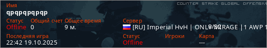 Играет на Counter Strike Global Offensive сервере. Страна: РоссияПервый раз замечен 20:50 19.10.2025