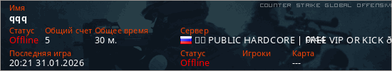 Играет на Counter Strike Global Offensive сервере. Страна: РоссияПервый раз замечен 14:39 21.09.2025
