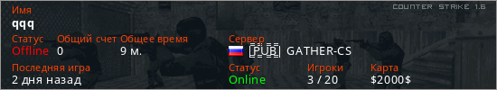 Играет на Counter Strike 1.6 сервере. Страна: РоссияПервый раз замечен 17:53 02.02.2026