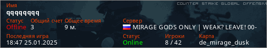 Играет на Counter Strike Global Offensive сервере. Страна: РоссияПервый раз замечен 16:13 23.03.2024