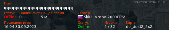 Играет на Counter Strike 1.6 сервере. Страна: РоссияПервый раз замечен 14:55 30.09.2023