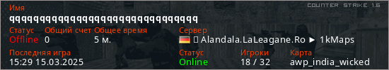 Играет на Counter Strike 1.6 сервере. Страна: ГерманияПервый раз замечен 15:19 15.03.2025