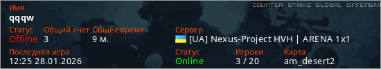 Играет на Counter Strike Global Offensive сервере. Страна: УкраинаПервый раз замечен 17:03 24.01.2026