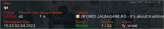 Играет на Counter Strike 1.6 сервере. Страна: РумынияПервый раз замечен 20:18 21.10.2022