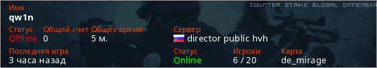 Играет на Counter Strike Global Offensive сервере. Страна: РоссияПервый раз замечен 17:46 25.03.2026