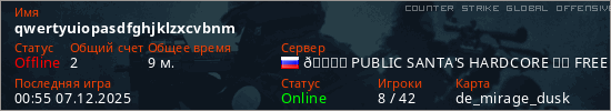 Играет на Counter Strike Global Offensive сервере. Страна: РоссияПервый раз замечен 22:49 05.11.2025