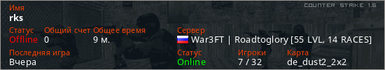 Играет на Counter Strike 1.6 сервере. Страна: РоссияПервый раз замечен 23:38 12.08.2025
