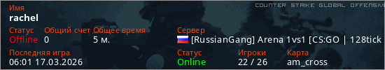 Играет на Counter Strike Global Offensive сервере. Страна: РоссияПервый раз замечен 05:54 17.03.2026