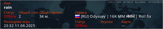 Играет на Counter Strike Global Offensive сервере. Страна: РоссияПервый раз замечен 01:35 16.04.2025