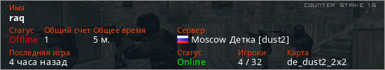Играет на Counter Strike 1.6 сервере. Страна: РоссияПервый раз замечен 13:49 04.03.2026