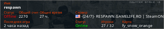 Играет на Counter Strike 1.6 сервере. Страна: СШАПервый раз замечен 09:48 09.08.2025